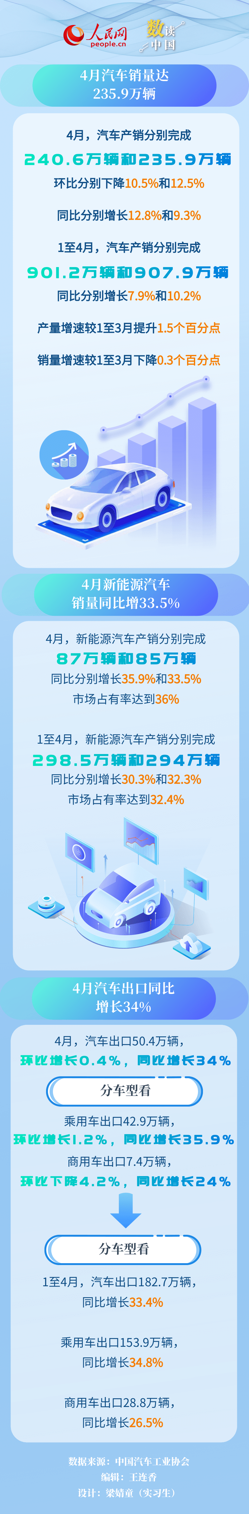天辰平台:4月我国新能源汽车和汽车出口同比继续保持快速增长
